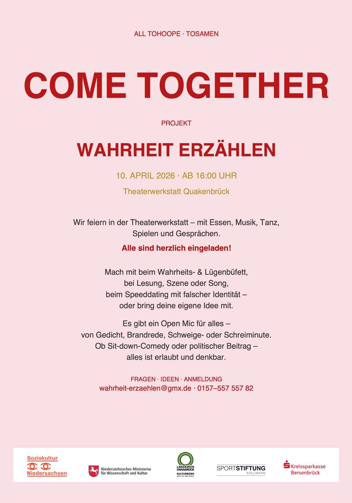 Alle aus und um Quakenbrück und aus WAHRHEIT ERZÄHLENsind eingeladen, das Fest aktiv mitzugestalten.