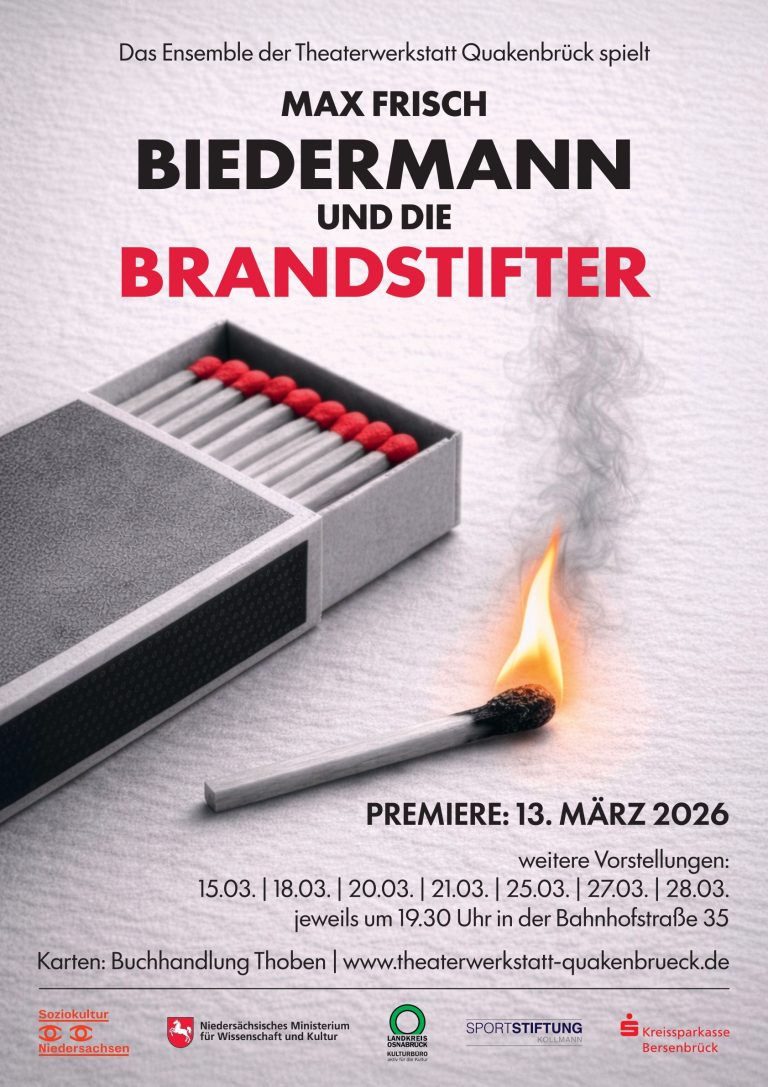 Herr Biedermann meint zu wissen was “richtig und falsch“ ist. Drum empört er sich auch über die Hausierer, die in seiner Stadt ein Feuer nach dem nächsten legen. Doch kaum steht einer dieser Unglück bringenden Herren in seiner Stube, schafft er es nicht, sich vor dessen Dreistigkeit zu wehren. Es ist etwas anderes, am Stammtisch Parolen zu schwingen, oder jemanden direkt ins Gesicht zu sagen, was man von ihm hält. Schließlich ist man kein Unmensch und hat Manieren!